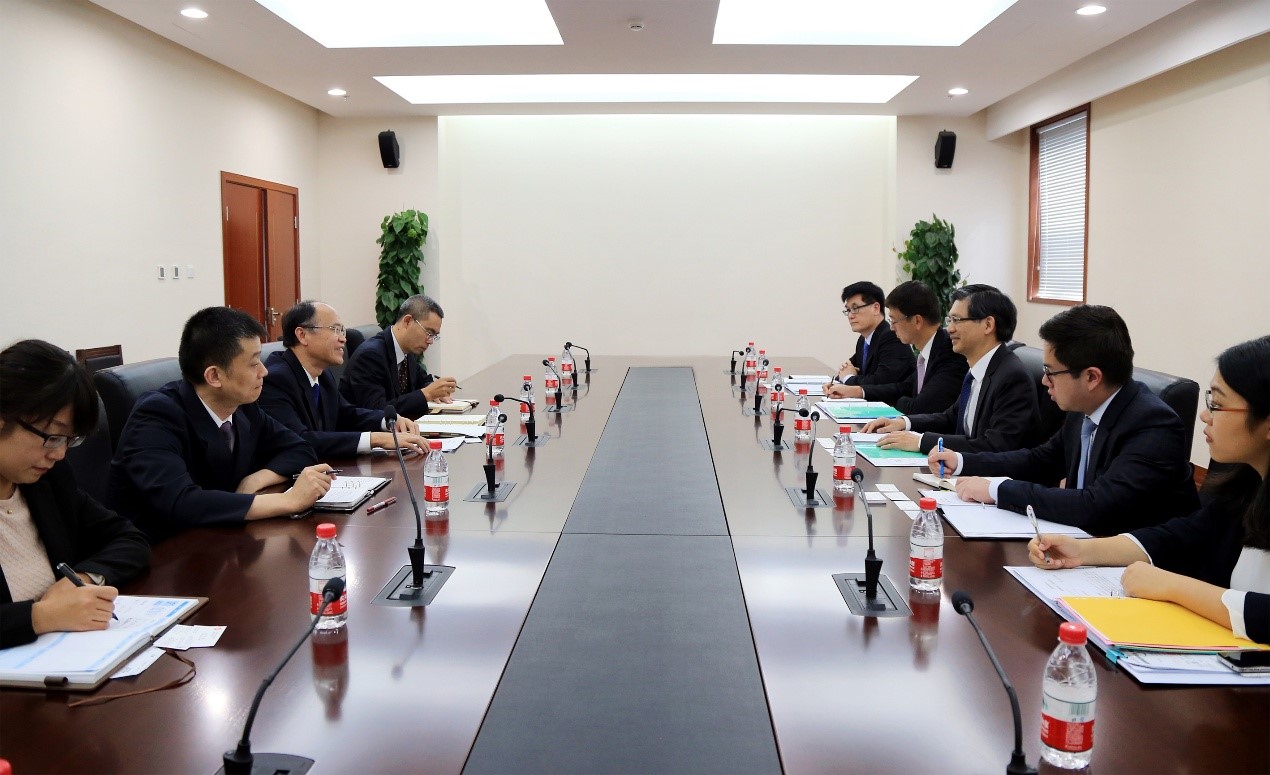 9月27日,国家铁路局副局长苏全利(左三)在北京会见了香港特别行政区政府路政署署长钟锦华(右三)一行。港方介绍了广深港高速铁路建设相关情况,双方就港铁公司第三批动车组驾驶人员考试事项及双方的驾驶资格互认等相关问题进行了交流。