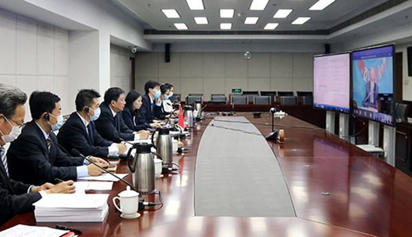 国家铁路局副局长刘克强(左四)出席铁路合作组织第四十九届部长会议(视频会议)