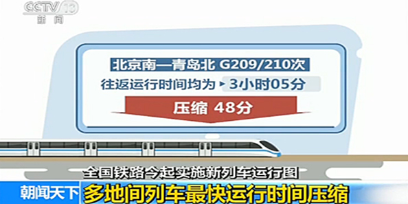 全国铁路今起实施新列车运行图 多地间列车最快运行时间压缩