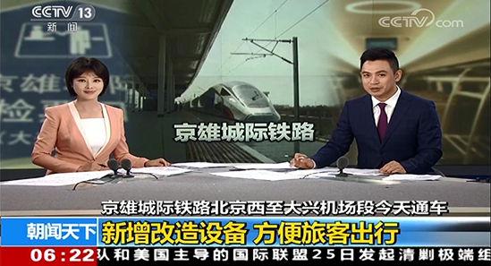 京雄城际铁路北京西至大兴机场段今天通车 新增改造设备 方便...