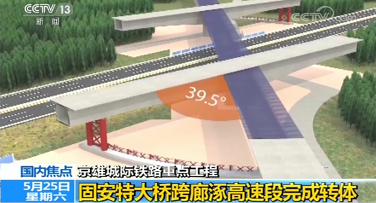 京雄城际铁路重点工程固安特大桥跨廊涿高速段完成转体