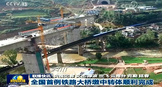 全国首例铁路大桥墩中转体顺利完成