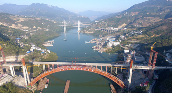 郑万高铁梅溪河双线特大桥主拱顺利合龙