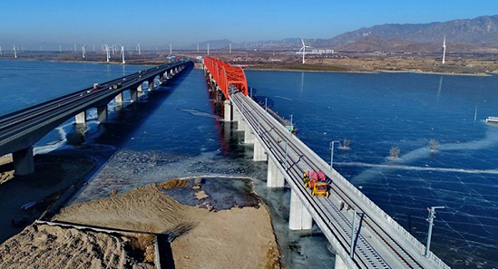 京张高铁官厅水库特大桥铺轨