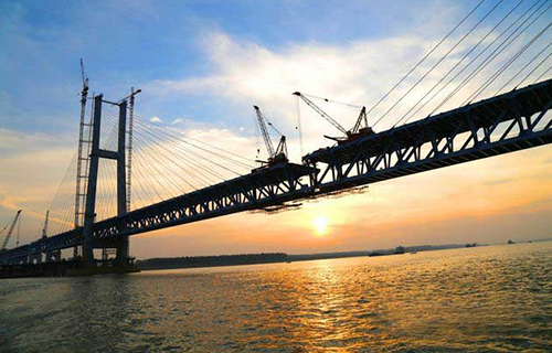湖北荆州长江公铁特大桥主跨钢梁顺利合龙