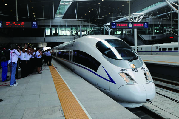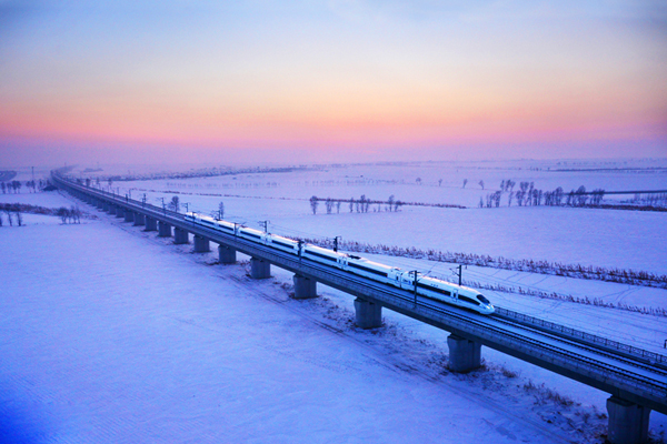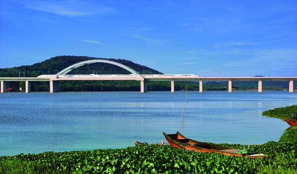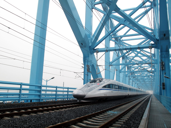 图为高速列车在京沪高速铁路南京大胜关长江大桥上驶过。