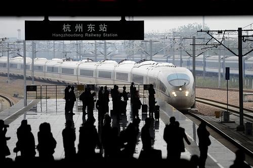 12月10日,沪昆高铁杭州东至南昌西段开通运营,至此,连接杭州与长沙的高速铁路——杭长高铁全线开通运营,杭州东至长沙运行时间最快由8小时15分缩短至3小时36分。图为由上海虹桥站开出的G85次高铁列车驶入杭州东站,准备经由杭长高铁前往广州南。(来源:中国政府网)