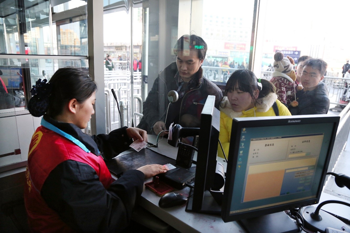 2月4日春运第一天,全国铁路开行临客117对,发送旅客577.3万人,客流平稳、秩序良好、安全稳定。《铁路旅客车票实名制管理办法》自今年1月1日起施行,对实名购买、查验车票提出了明确的规范要求。图为北京西站客运人员正在按规定查验旅客车票和证件。