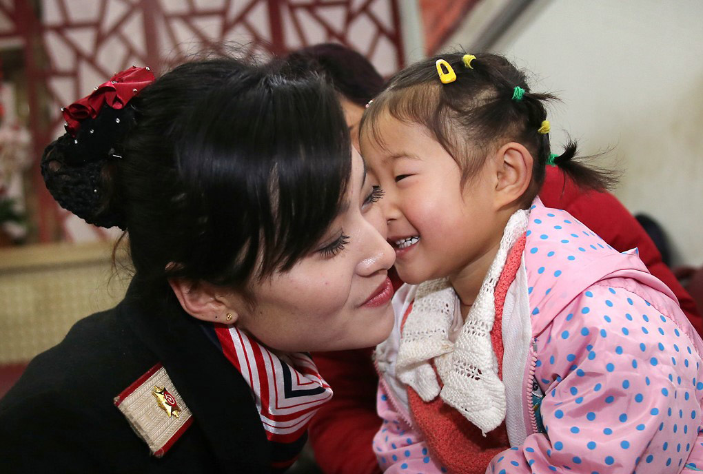 北京站“素萍服务室”里,这位来自黑龙江的小朋友,看着客运员陶志婷不停地照顾着老幼病残孕旅客,动情地说:阿姨,你真漂亮,我能亲亲你吗? 万象 摄