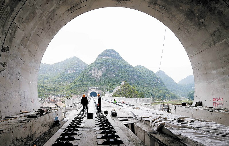 目前,沪昆高铁安顺段主体工程已完成95%,附属工程正在加紧建设。沪昆高铁安顺段全长140公里,设平坝南、安顺西、关岭3个车站。图为沪昆高铁安顺段河上堡隧道施工现场。 图片摄影:新华社记者 卢维
