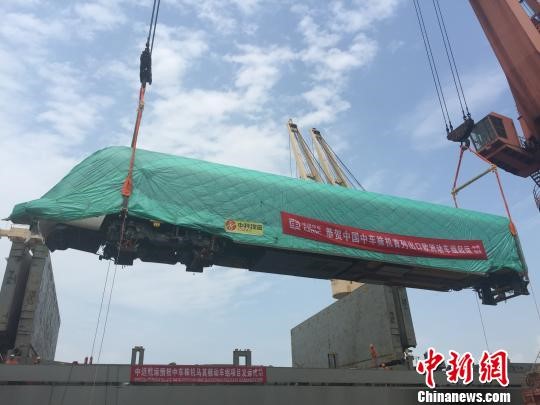 8月16日,由中国中车株洲电力机车有限公司制造的首列出口欧洲动车组在上海港罗泾码头吊入货轮开始发运。这辆三节编组的动车组将乘坐海轮取道“21世纪海上丝绸之路”,穿过南海、横渡印度洋,抵达马其顿。该动车组将在泛欧铁路10号走廊马其顿境内投入使用。
