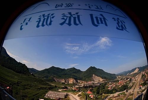 图为透过首发动车组列车车窗拍摄的辽东地区。