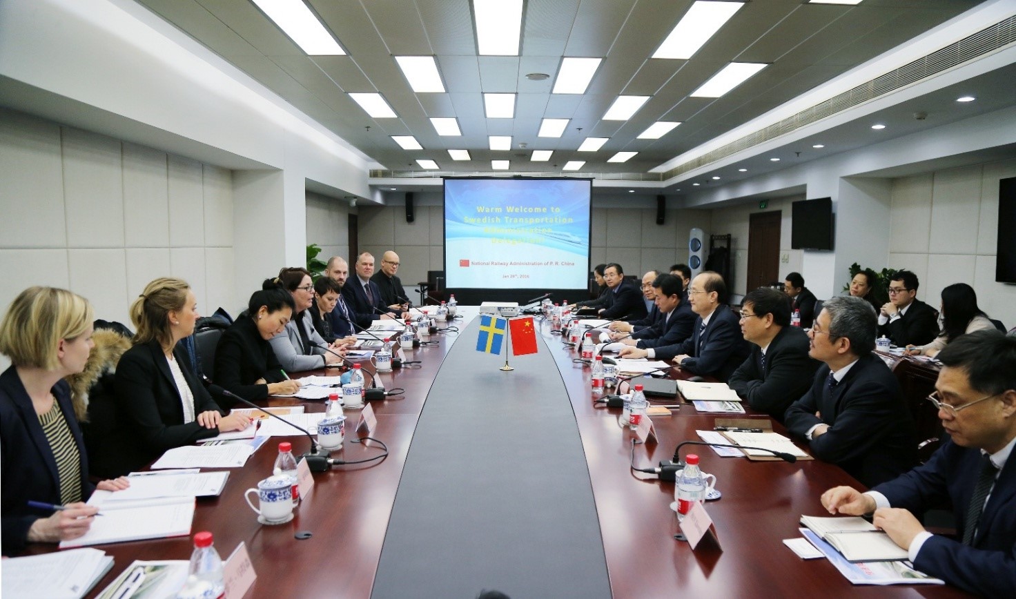 1月28日,国家铁路局党组成员郑健在北京主持召开中国-瑞典铁路交流座谈会。国家铁路局、国家开发银行、中国铁建股份有限公司、中国中车股份有限公司、中铁第四勘察设计院集团公司代表与瑞典交通管理署、瑞典投资贸易委员会和瑞典驻华使馆代表就高速铁路规划设计、技术标准、施工建造、装备制造、经济社会效益等问题进行了深入的交流。