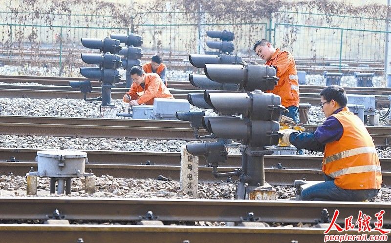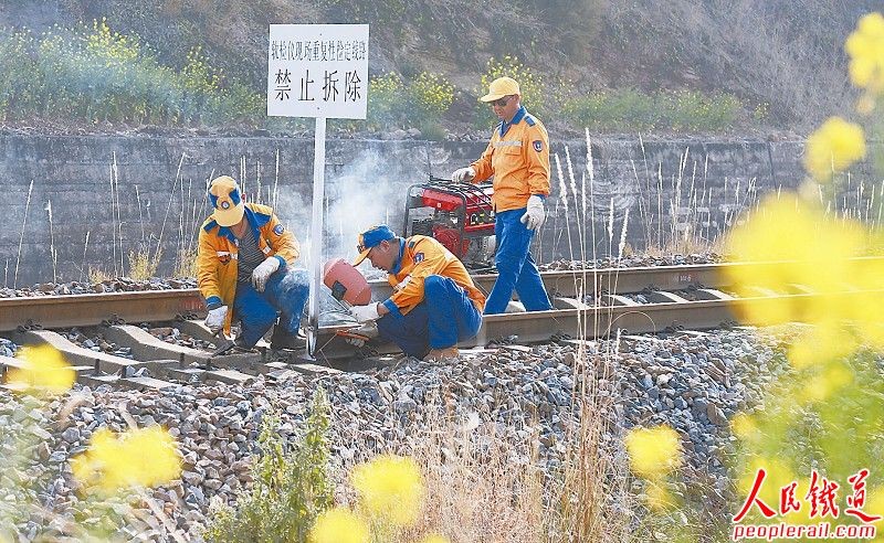 在冬运、春运中,铁路客流始终保持高位运行,行车设备和客运服务设施在低温、雨雪、冰冻条件下经历较长时间高强度、超负荷的运用,致使部分设备处于 “亚健康”状态,甚至出现 “病痛”。针对这一情况,从3月份开始,铁路相关企业对行车设备和客运服务设施进行全面整修,及时消除安全隐患,进一步提升设备运用质量。图为昆明铁路局广通工电段职工在进行线路施工改造。侯小燕 摄