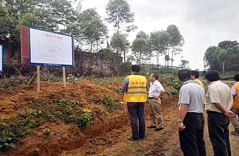 图为检查组在南宁铁路局检查营业线施工防洪情况。