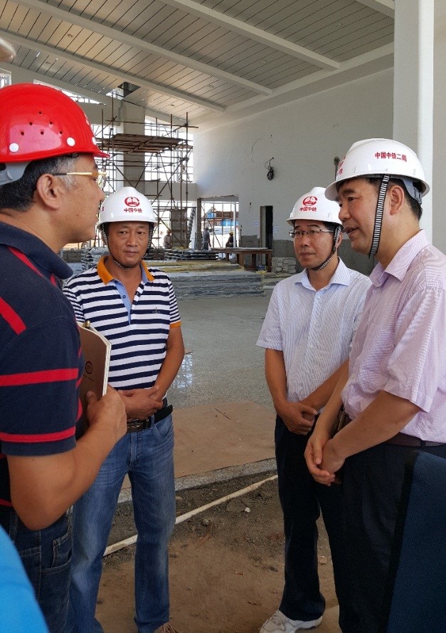 检查组在海南环岛高铁施工现场检查施工安全措施落实情况。