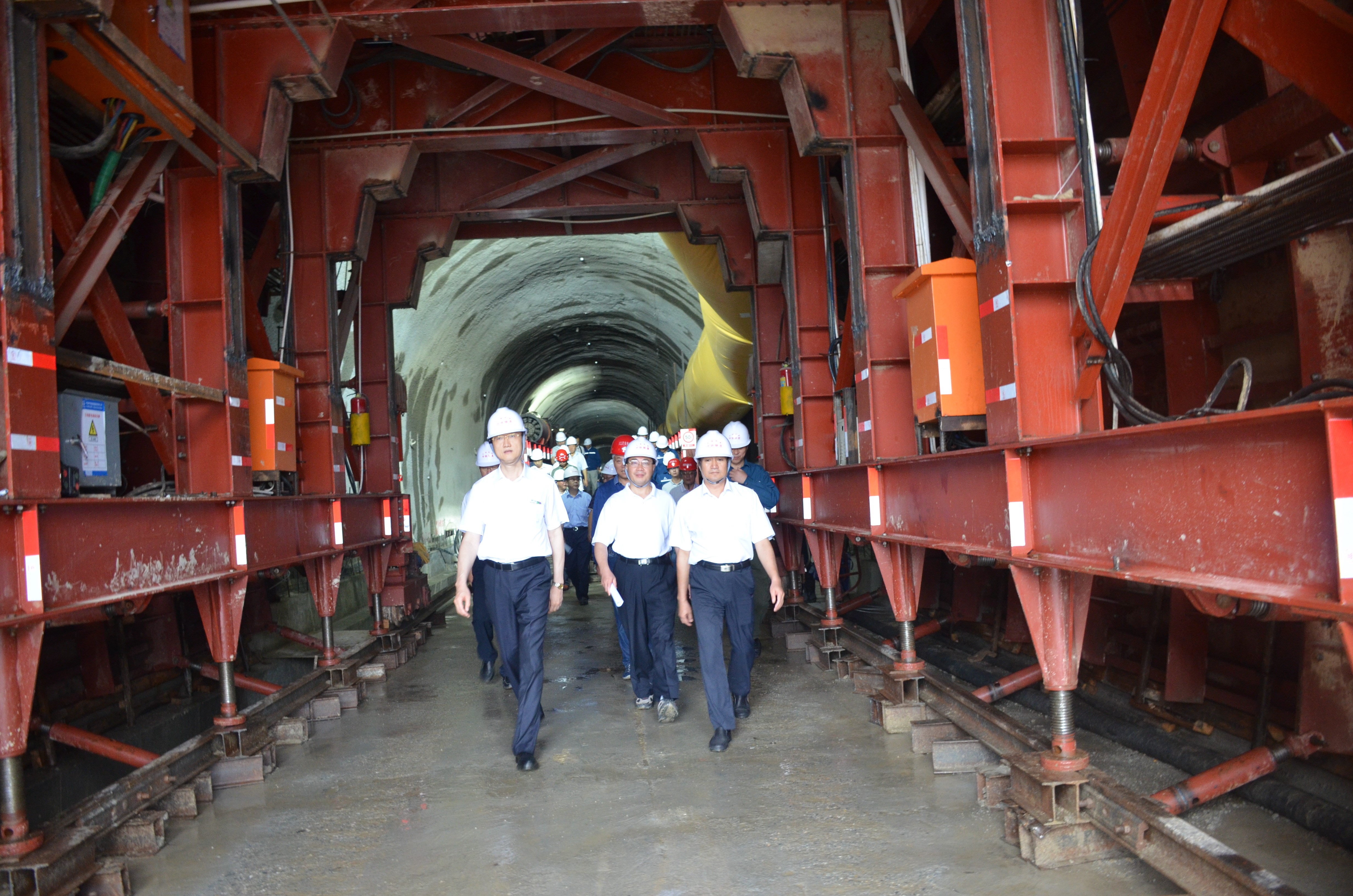 局党组成员郑健(左一)调研大理至瑞丽铁路高黎贡山隧道
