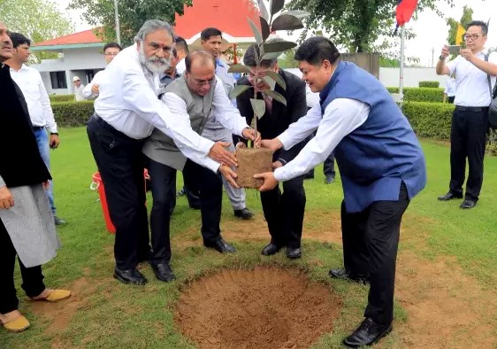 8月20日,中国中车在印度设立的首个铁路工厂正式投产。该工厂位于印度新德里和孟买之间的哈里亚纳邦巴沃工业园区,是中国在印度投资兴建的首个轨道交通装备电气牵引设备制造企业。随着工厂正式投产,中国中车在印度的出口模式将从单一的产品输出转变为技术输出、资本输出、服务输出等综合性输出,推动国际产能合作、带动当地轨道交通产业链的完善和升级。图为中车先锋(印度)电气有限公司厂区里,中印双方一同种下橡胶树,寓意公司快速成长。