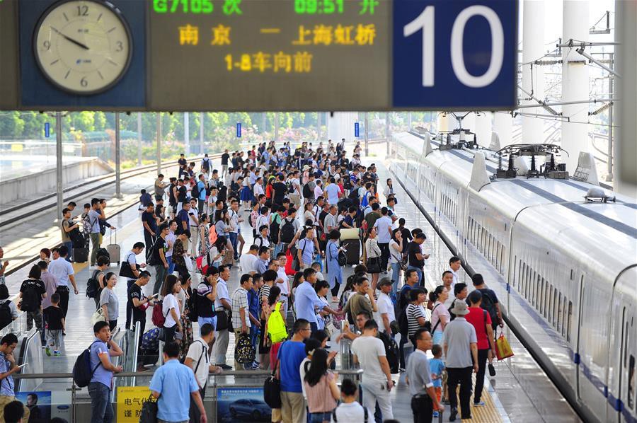 8月31日,为期两个月的全国铁路暑运落下帷幕。暑期运输总体安全平稳。全国铁路累计发送旅客5.5亿人次,同比增加4608万人次,增长9.1%;全国铁路日均安排开行旅客列车6867列,同比增加944列,增长16%。图为8月31日,旅客在无锡火车站准备乘车。还月亮 摄(图片来源:新华社)