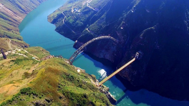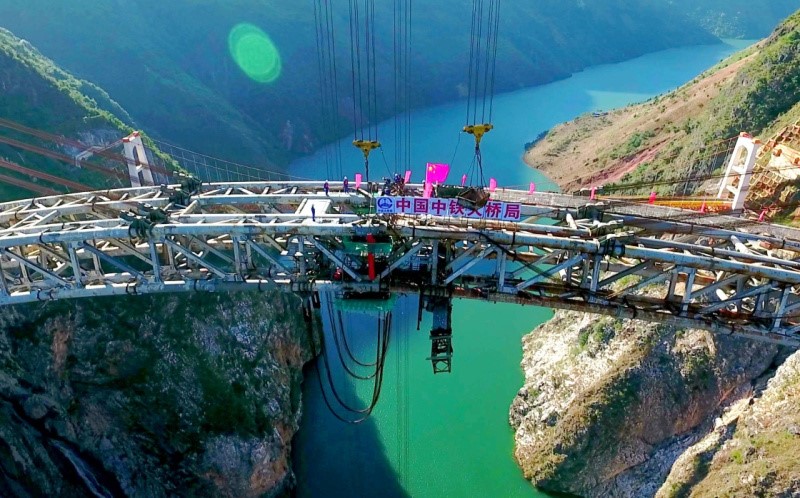 云南大瑞铁路澜沧江特大桥钢管拱顺利合龙