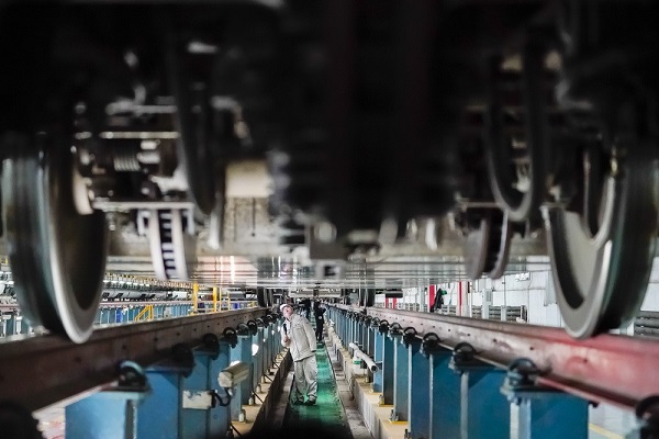 2018年春运期间,每天有包括数十组“复兴号”在内的80组动车组列车在北京动车段南所接受检修。1500余名工人轮班连夜工作,保障春运安全。(来源:新华社)