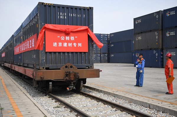 首趟“公路转铁路”进京建筑材料列车抵京
