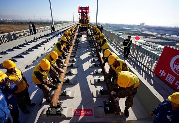 11月1日,由中铁三局承建的京张高铁全线铺轨工程正式开始。京张高铁是国家重点建设项目,是2022年北京冬奥会的重要交通保障线。京张高铁全长174公里,建成后,乘高铁从北京到张家口的时间将缩短到50分钟,对于助力奥运、促进京津冀一体化发展、连接西部都具有十分重要的战略意义。