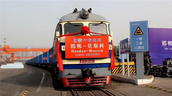 11月28日,邯郸至莫斯科中欧班列在河北邯郸货运中心邯郸货场首发。本次专列共装载41车货物,终到站为俄罗斯联邦莫斯科沃尔西诺站,全程9500公里,运行时间15天左右。