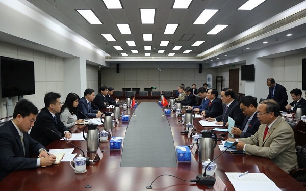 2月25日,国家铁路局副局长安路生(左四)在北京会见了越南国会科技与环境委员会副主任黎鸿静(右四)一行,双方就铁路行业发展等问题进行了广泛交流。