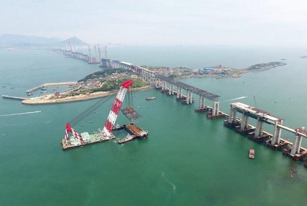 平潭海峡公铁两用大桥全桥非通航孔钢桁梁全部架设完成