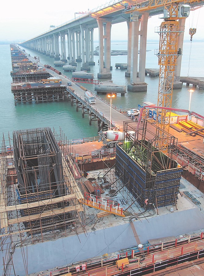 新建福厦铁路泉州湾跨海大桥主墩首节塔柱浇筑