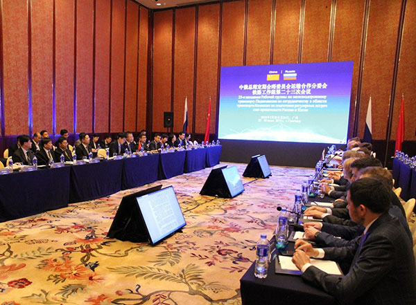 7月24日,国家铁路局副局长于春孝与俄罗斯联邦运输部副部长托卡列夫在广州共同主持召开了中俄运输合作分委会铁路工作组第二十三次会议。