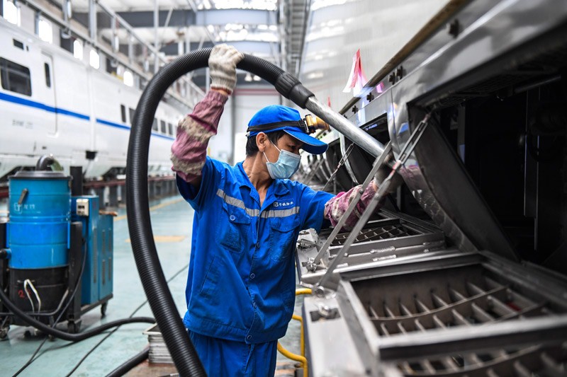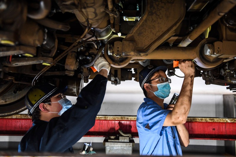 随着各地复工复产陆续展开,高铁、动车开行密度逐渐增大。中国铁路南宁局集团有限公司南宁车辆段近期对高铁、动车实施“春季整修”,做好车辆隐患排查,确保车辆运行安全。