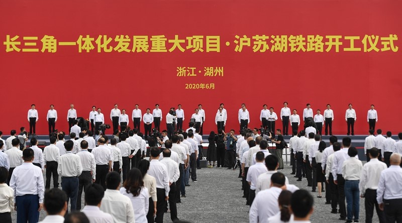 6月5日,长三角一体化发展重大项目沪苏湖铁路开工仪式在浙江湖州举行。同时,在上海、江苏同步举行沪苏湖铁路上海段、江苏段建设动员会,在安徽同步举行扬马城际铁路马鞍山枢纽工程开工仪式。沪苏湖铁路全长约163公里,设计时速350公里,将串联起上海、江苏、浙江三地,并在湖州与商合杭铁路衔接,连通安徽,成为长三角互联互通的智能大动脉。