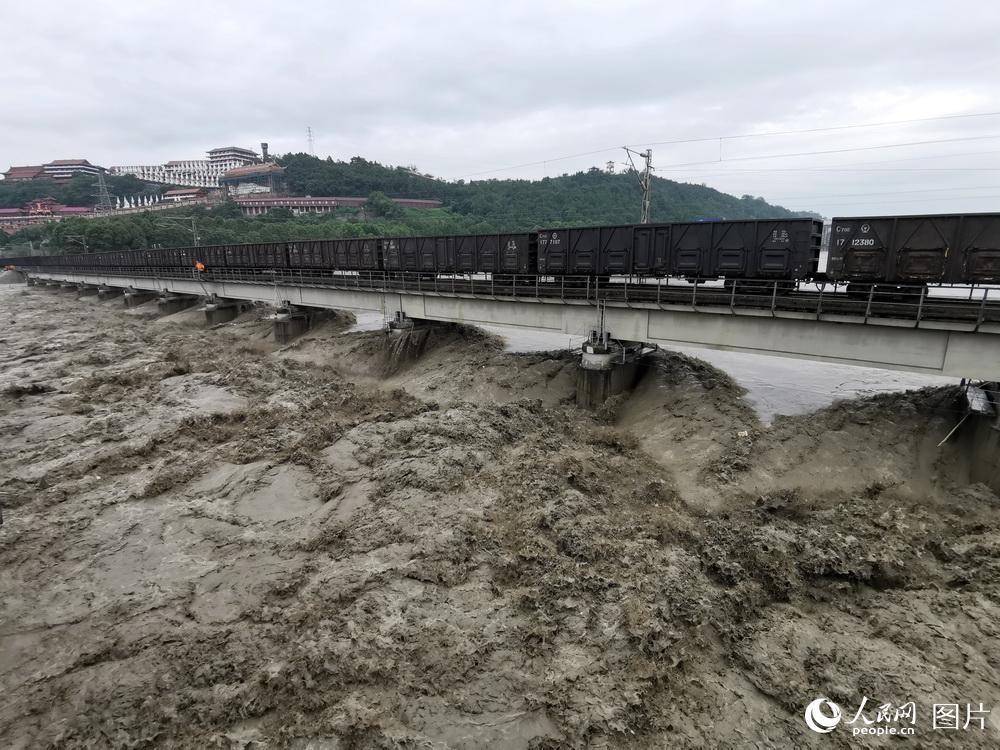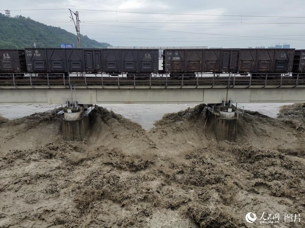 洪水袭击宝成铁路涪江大桥 超8100吨“重车压梁”护桥
