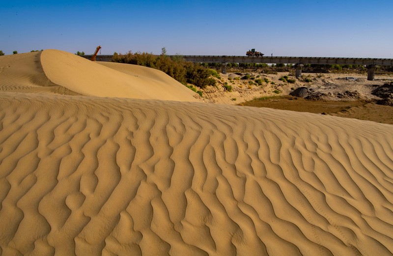 近日,新疆和田至若羌铁路施工现场一片繁忙,铺轨、路基护坡、架梁等各项建设稳步推进。和若铁路线路全长约825公里,是塔里木盆地铁路环线的重要组成部分,于2020年5月正式开始铺轨。工程完工后,新疆洛浦、策勒、于田、民丰、且末等地将结束不通火车的历史,和田群众出疆路程将缩短1000多公里,有利于推动南疆地区经济社会加快发展。