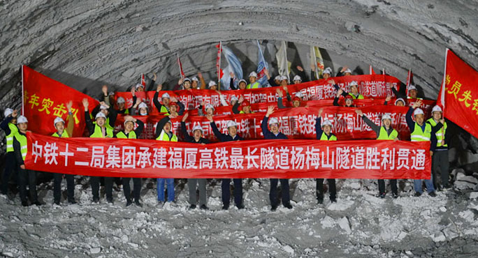 4月15日,由中铁十二局福厦2标项目部承建的新建福厦铁路全线最长隧道——全长10669米的杨梅山隧道顺利贯通。新建福厦铁路是我国首条跨海高铁,设计时速350公里,预计2022年建成通车。