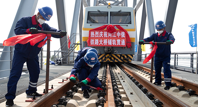 中俄首座跨江铁路大桥铺轨贯通