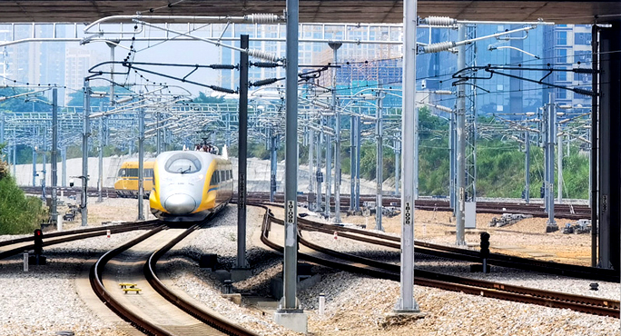 9月12日13时10分,55690次黄色高速列车CRH380AJ-0202从深圳北站缓缓驶出,北上驶向粤赣边境的广东和平县,这标志着赣深高铁广东段正式开始全线联调联试。