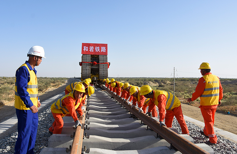 9月27日上午,随着最后两条钢轨在道床上铺设完成,作为环塔克拉玛干沙漠铁路“最后一公里”的和若铁路全线铺轨贯通,为2022年开通运营奠定坚实基础。和若铁路为国家重点铁路建设项目,线路全长825.476公里,2018年12月开工建设,连通南疆和田地区和田市与巴音郭楞蒙古自治州若羌县。