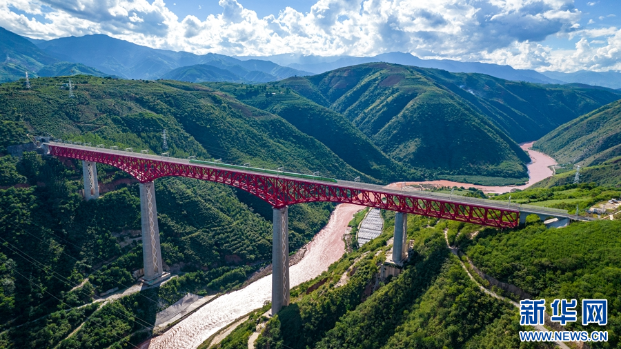 复兴号动车行驶在丽香铁路金沙江特大桥上。