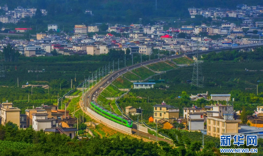 云南省保山市隆阳区,复兴号动车穿行在城乡之间。