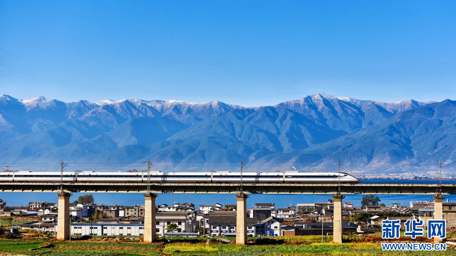 云南省大理州大理市,和谐号动车与洱海“同框”。