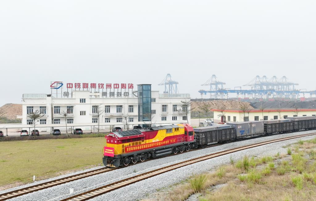 3月17日,一列满载缅甸黑芝麻、海南椰子汁、广西白糖等货物的海铁联运班列,从钦州铁路集装箱中心站缓缓发出驶向四川城厢站。这是2024年西部陆海新通道开行的第2000列海铁联运班列,同比增长16.8%,提前14天完成一季度班列开行任务。