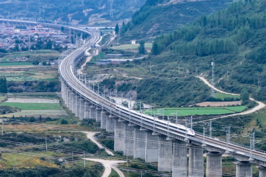 8月30日10时36分,新建四川成都至青海西宁铁路(川青铁路)镇江关至黄胜关段开通运营,世界自然遗产黄龙、九寨沟以及地处川西北高原腹地的松潘草地正式接入我国铁路网。