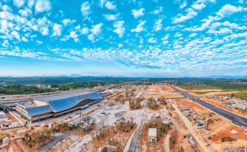 图为广湛高铁阳江北站建设现场。