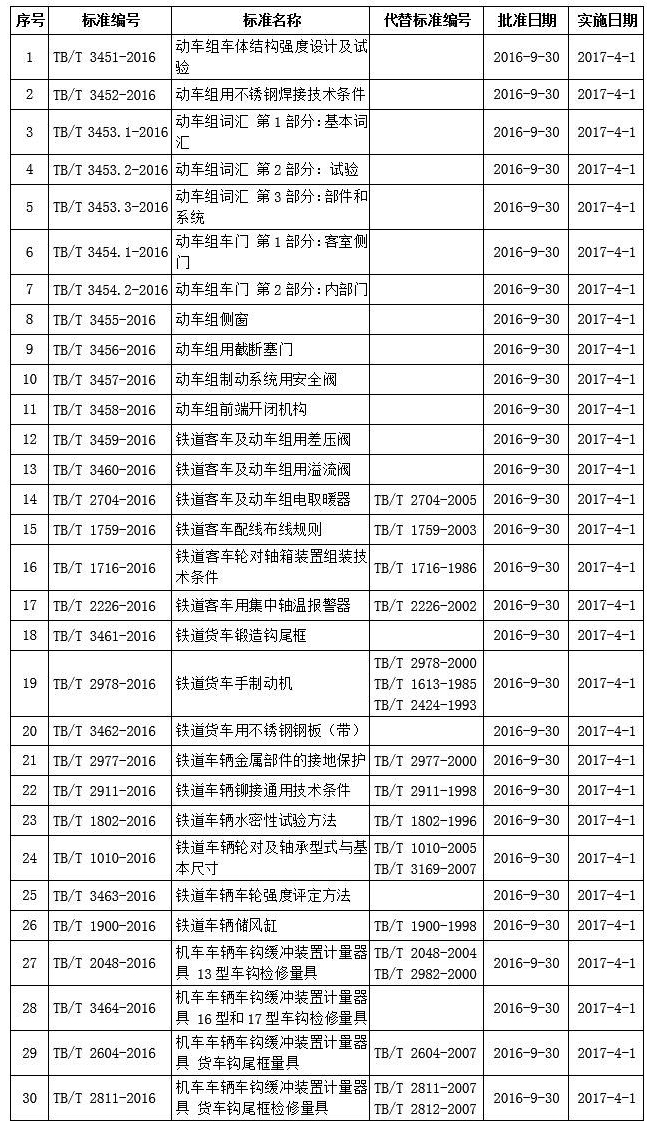国家铁路局批准发布以下30项铁道行业标准,现予以公布。