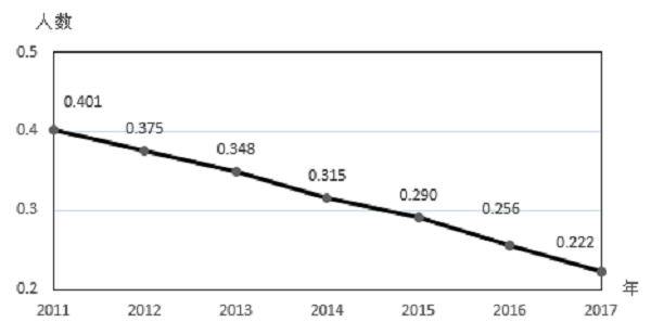 “十二五”以来铁路交通事故10亿吨公里死亡率变化趋势图