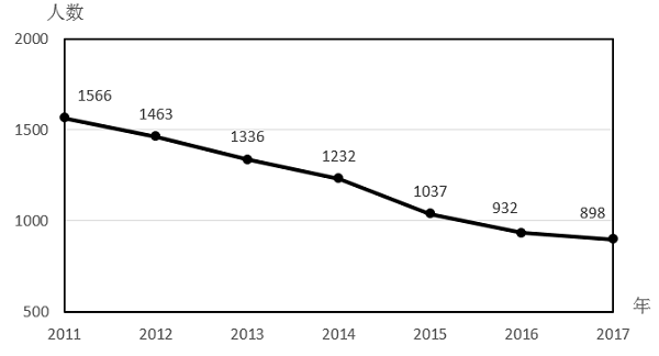 “十二五”以来铁路交通事故死亡人数变化趋势图