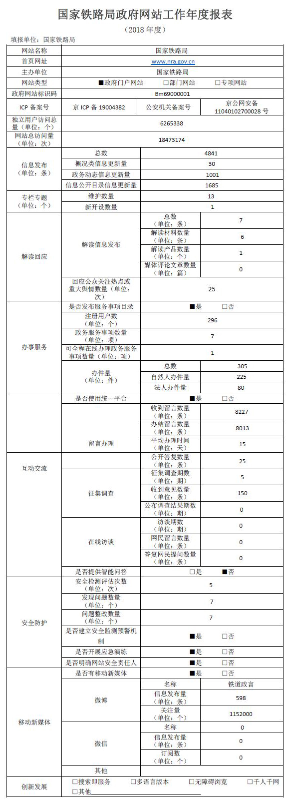 上一篇:国家铁路局政府网站监管年度报表(2018)